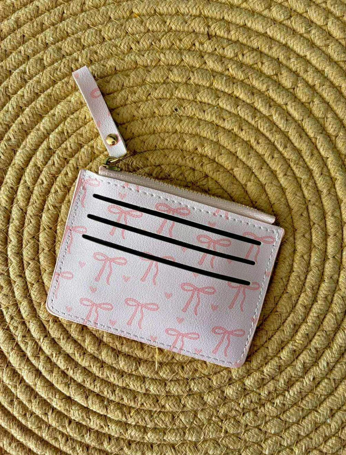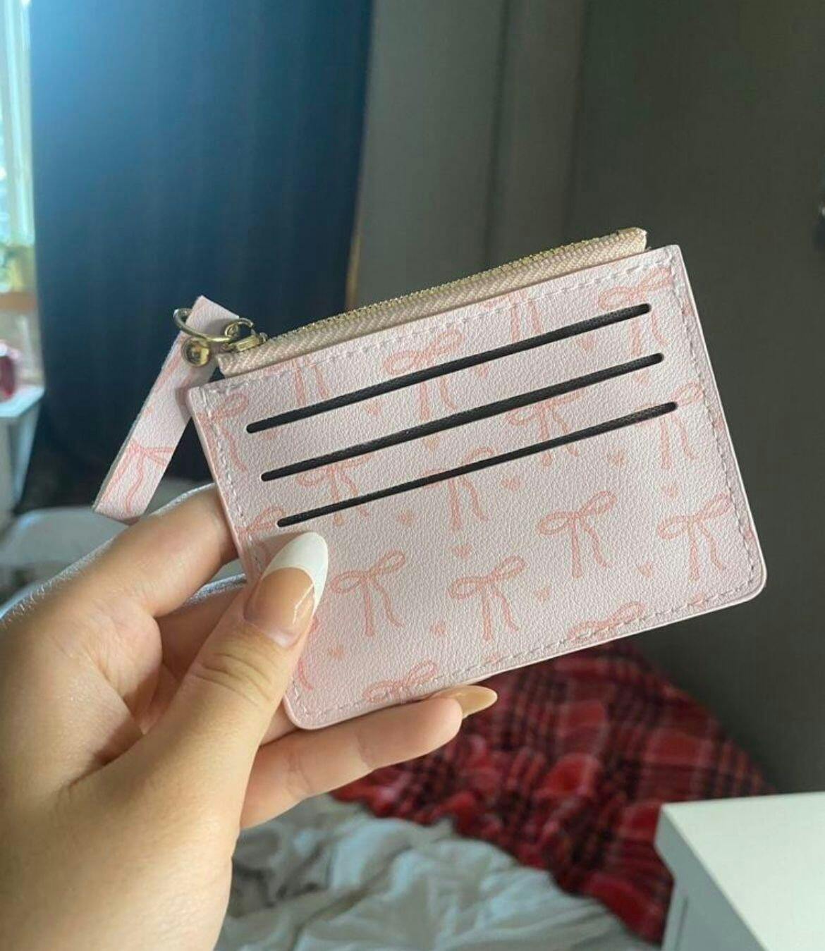 Sweet and slim Bow Card Holder Wallet π β crafted in a soft pastel pink tone with delicate bow patterns for a feminine touch. It features multiple card slots and a top zipper pocket for coins or cash, keeping your essentials neat and stylish on the go πβ¨